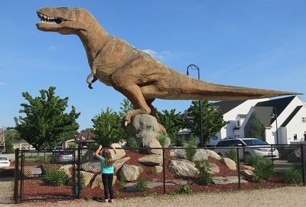 You will not find life-size models here, but the floodplain imprinted with hundreds of fossilized dinosaur footprints is really impressive. Informational placards and hands-on activities will keep the kids entertained, as will the Discovery Room's collection of minerals, fossils, and more. You can also pack a picnic, complete a nature I Spy game, or bird watch while walking the serene trails. Trails are free. Admission to the Exhibit Center is $6 per adult and $2 for children ages 6-12).