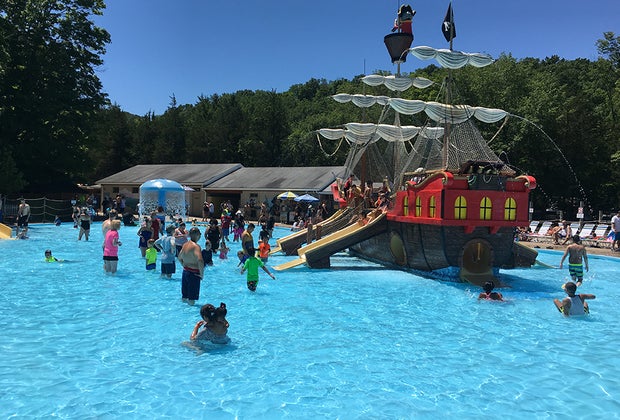 Swapping shorts for a swimsuit, my daughter jumped right into the giant wading pool. Nestled in the middle is the half-submerged Buccaneer Pirate Ship, a giant climbing structure with slides and tunnels to explore. There are also several mini slides around the edge of the pool, so impatient little ones will never have to wait their turn for a slip ‘n slide.