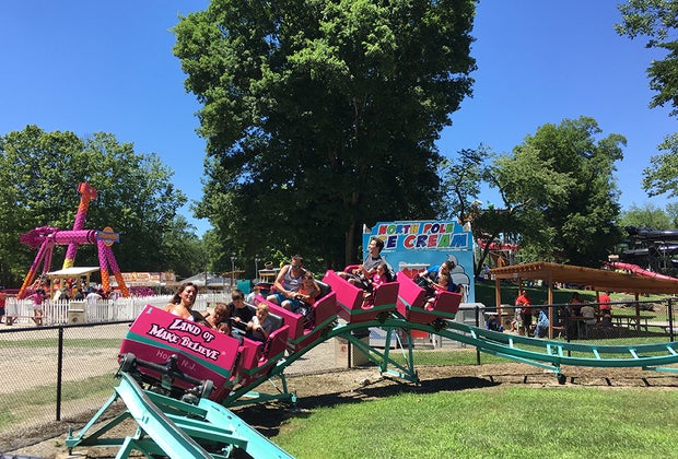 Food at Land of Make Believe is relatively inexpensive, so don’t feel pressured to bring your own. You’ll find the usual amusement park fare, including chicken nuggets, hot dogs, hamburgers, and, of course, ice cream. You can get a hot dog or chicken nuggets, fries, and a drink for about $10. Bottled water is $2 each, and an ice cream cone is $4—though one word of caution for your sprinkles lover: there are no toppings. Don't forget to grab a bag of cotton candy or caramel corn for the road home.