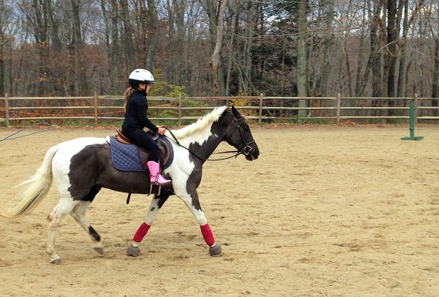 Ask my daughter what she likes about riding, and she’ll squeal: “It’s fun! Sooooooo much fun.” Indeed, her enormous smile after every jump, and the way she pushes her cheek into the horse’s shoulder as she hugs him at the end of each session testify to her joy. She also likes “how cool” it is to have a "giant" for a friend, and takes pride in brushing and tacking him.