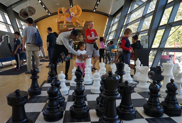 Get active by playing a giant game of chess at the Staten Island Children's Museum. Photo courtesy of the museum