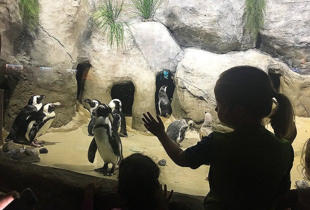The African Penguin tank is another highlight. These adorable, endangered, birds are pretty entertaining as they swim, dive and waddle on shore. Kids can peer underwater to watch the penguins gliding through the seawater or peer in through a "porthole" to feel even closer to the penguin action.