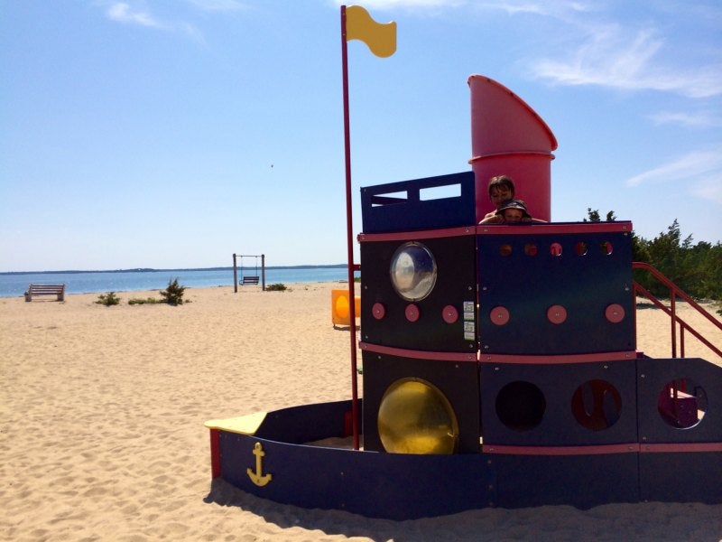 Playground Fun - Orient Beach Park offers two playgrounds, one for ages 2-5 and another for ages 5-12. Both have a sea life theme, including an octopus seesaw and tugboat climber. A swing set is also on premise. Soft sand lines the ground, so kids can play sans shoes. Shaded benches nearby offer parents respite from the sun or double hanging swings overlook the bay near the playgrounds as well.