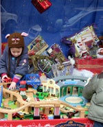 The New York Transit Museum and the Children's Museum of Manhattan sell wooden subway trains with magnets to attach the cars together. Kids can play with them on any large, flat surface or you can invest in a standard wooden track. You can also buy an inexpensive train and track sets from Melissa & Doug or Thomas and Friends.