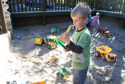 My younger son loved the sandbox, which is filled with toys for all to use.