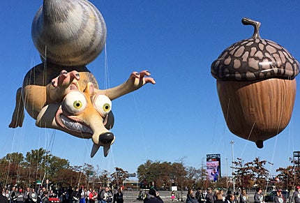 Pint-sized moviegoers have grown accustomed to watching Scrat chase his acorn in Ice Age, but the squirrel has his work cut out for him as his chase must now include navigating parade crowds and Manhattan city streets! To give you an idea of scale, Scrat's helium acorn would require 15 million real-lie acorns to fill its volume.