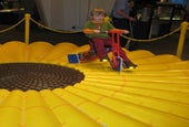 The first activity we tried was Plant the Daisy, a lesson in harmonic motion. Here we needed to grasp an enormous faux-daisy at a specific place on the stem and pull it out of the pot, then put it back on a peg in the pot - all while the stem wobbled in your hands. For me, it was pretty hard to do. When my son tried it was downright dangerous. Stand clear of a 5 year old boy wielding an uncontrollable 6 foot daisy.