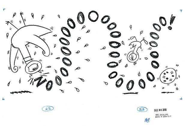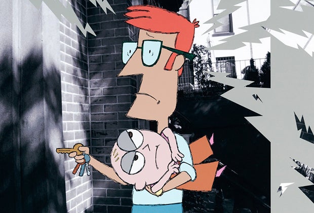 The exhibit takes over three galleries on the museum's second floor. You enter to a career retrospective focusing on his early projects such as student films, early television work for Sesame Street and Sheep in the Big City. You see old-school animation cells and his graphic novel Walking the Williamsburg Bridge to Work—his experiences of the September 11 terrorist attacks—created for DC Comics and now housed in the Library of Congress.