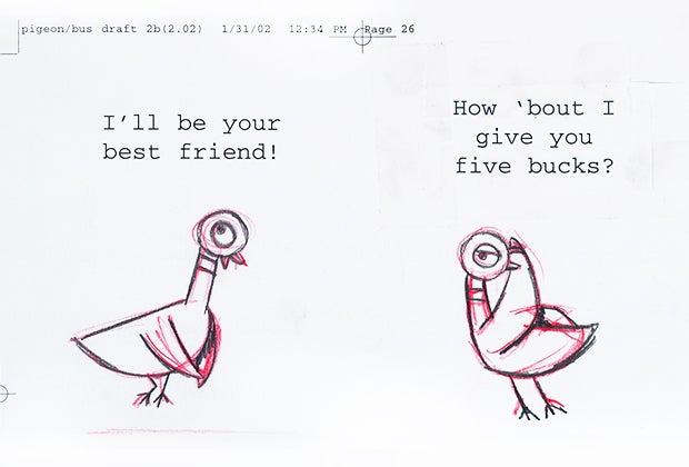 A preliminary sketch of Don't Let the Pigeon Drive Drive the Bus. Image courtesy of NYHS.