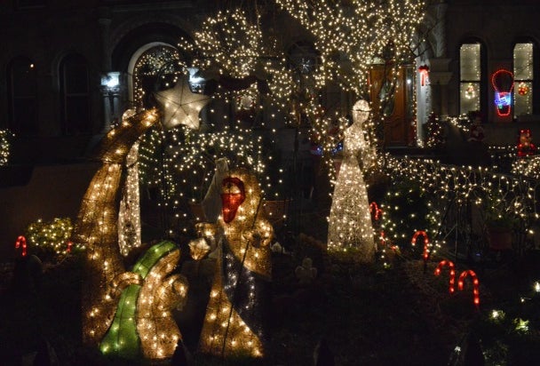 Snoopy and the gang come to celebrate Christmas at these brownstones with angels, snowmen and Santa. Check out these wonderful and creative light displays that have something for everyone.