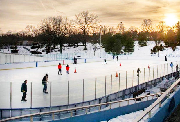 The fun doesn't end with the summer at Christopher Morley Park. The outdoor ice rink is a popular winter destination.