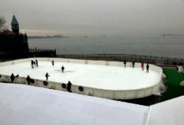 Hot on the heels of the opening of the Van Cortlandt Park Rink comes a brand-new outdoor ice-skating rink in Battery Park City. The Liberty View Ice Rink, which is built on Wagner Park, opened quietly this past weekend and boasts incredible views of the Hudson River and the Statue of Liberty, and an illuminated Christmas tree. Pretty amazing for a spot that was underwater just a few weeks back during the hurricane. Rates are $10 per person and $5 for skate rental.