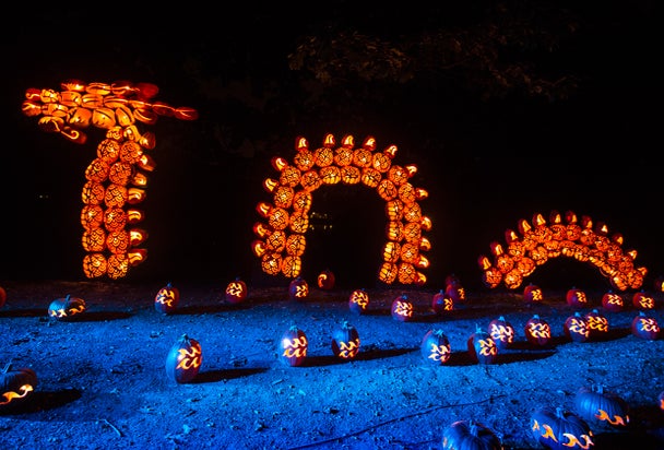 A giant jack-o lantern sea serpent rises near the aquarium during the Blaze festival. Photo by Tom Ncyz/courtesy of Blaze.