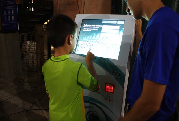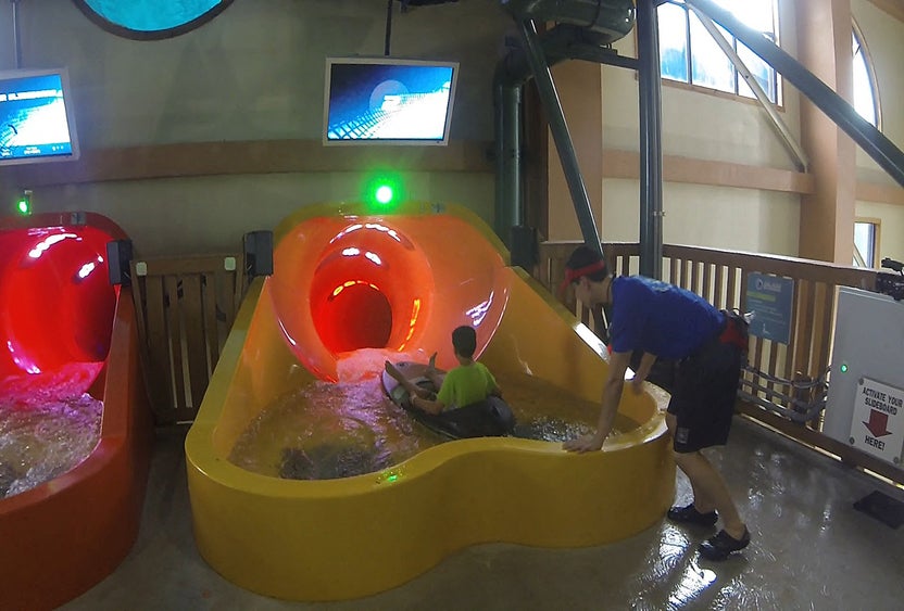 Which brings us to the lines: Like all popular attractions, Great Wolf has its share of long lines—irritating but inevitable lines that can occasionally be exacerbated by mechanical mishaps (my husband and son waited 45 minutes for one ride after a slide went out of order). Slideboarding requires an initial three-step registration process. First you must register your nickname and password at one kiosk, and then you travel to another kiosk to link your Slideboard to the account. Right before you go down the slide, another attendant links the board again to your ride. (This process drops down to the last two steps for all rides after the first one.)