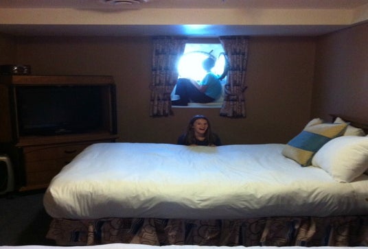Another great reason for getting a room is that you just don't know how your kid is going to react to a grown-up haunt until you get there. I mentioned three kids having the time their lives on our outing—and oh, they did!—but there were actually four kids in our party. The fourth turned out not to enjoy the scare factor, so he and his dad retreated to their atmospheric stateroom for a quieter adventure on board the ship. If his family hadn't been staying on board, there would have been a dilemma; but with a room to retire to, both boys had a wonderful evening: one squealing with Scary Mary, and the other relaxing with a starboard view.