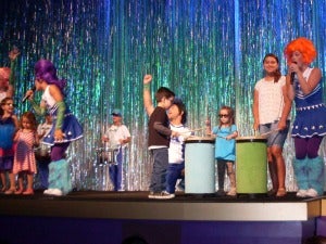 As always, El Capitan remains the place to see a Disney movie. From the organist who entertains before the show, to the fanfare and glitter of he screen, everything about your visit tells you you’re in for something special. The pre-show for Monsters University is a Pep Rally, with monstrous cheerleaders rousing the crowd with the M.U. f(r)ight song. A few lucky kids get to go on stage to join the drumline. But the stars of the show are Sully and Mike, who come out and really get the audience going.