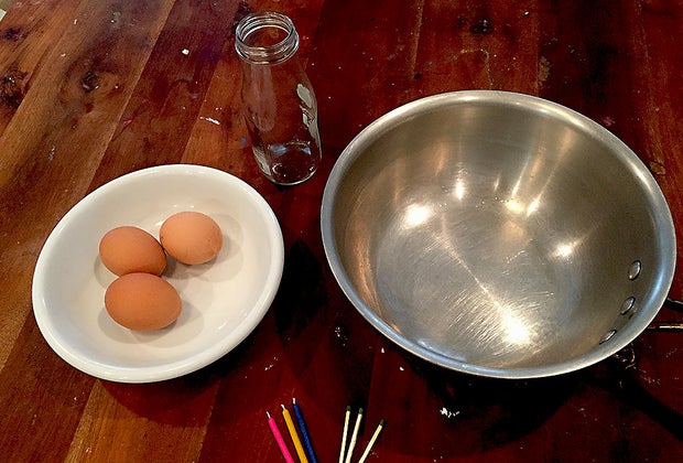 Fill up a pot of water and gently drop in the eggs. You might want to boil several eggs to try the experiment a few times, including mixing in the candle variation described below. Bring the water to a boil. Set temperature to medium-high and boil for 20 minutes.