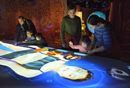 A 14-foot interactive table is dedicated to viewing microbes at work. An animation of the immune system shows how it kicks into gear when you cut yourself. You can also examine exhibits that explain bacteria’s role in destroying kidney stones, creating tooth decay and other functions.