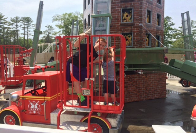 Firefighting Flynn was a lot of fun. Kids get in a "basket" and tried to shoot flames out with a water gun. The button is hard for younger kids to push, so make sure they have an older sibling or parent with them. You get a little wet on this ride, but the spraying felt great in 90 degree weather.