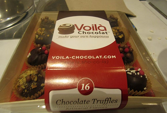 Walking in the door of Voilà Chocolat, a visitor's senses are greeted with the sweet smell of chocolate, and each guest is ushered to an individual chocolatiering station. Once aprons are on, a Voilà employee doles out samples of the store's three chocolates (white, milk and dark), as well as a colorful menu with details of all the possible projects. Once selections are made and chocolates are picked, it's time to get creative.