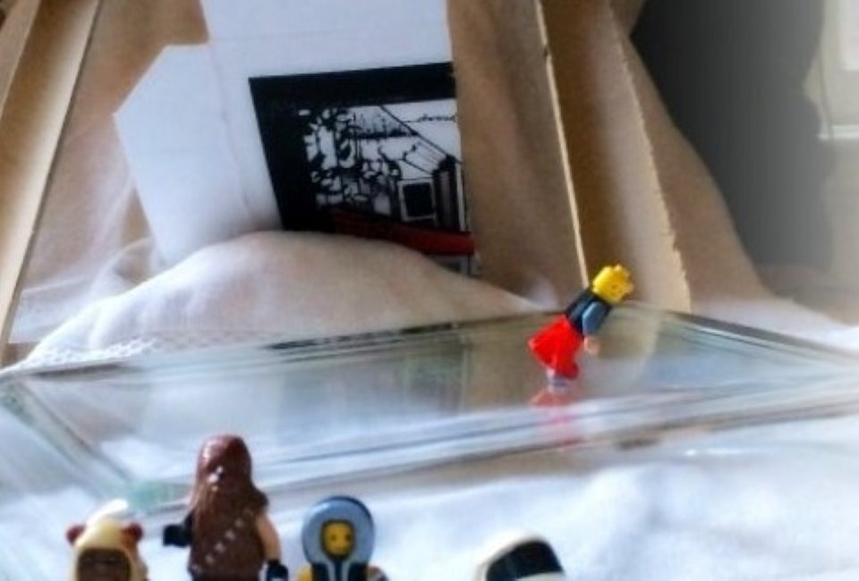 Bobsled, Luge and Ski Jump If you have race car tracks at home these would be perfect for creating your runs. We used a wrapping paper tube cut in half for the bobsled runs and a slice of a pizza box for a ski jump. Kids will get a little physics lesson as they experiment with different angles and curves to create the best runs. They can do the same as they design their athletes and bobsleds to get the best performance and then race them against each other. Figure Skating and Ice Dancing This one is actually pretty magical and kids will love it. Use a bit of clay or tape to attach a magnet to the bottom of your mini-fig's foot. We used a pyrex casserole dish for our ice rink, but you can use just about anything from a shoe box top to a glass pie dish. Put you mini-fig skater on the rink and then hold another magnet under the dish so that it attracts your skater. By moving your magnet the skater will magically move on the skating rink surface. If you like you can choreograph performances and compete for the best routine. Here's what it looks like: