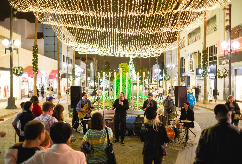Downtown Santa Monica celebrates Hanukkah with a traditional menorah lighting at sundown each night during the holiday.