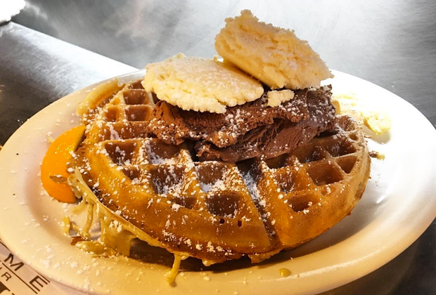 Can you resist a Belgian waffle with ice cream, a house specialty at Tim's Shipwreck Diner? Photk by tims_shipwreck via Instagram
