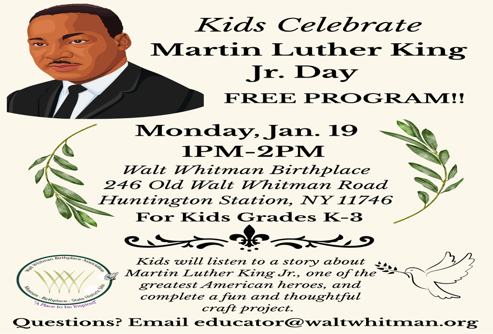 Kids can listen to a story about Martin Luther King Jr., one of the greatest American heroes, and complete a fun and thoughtful craft project - all courtesy of the Walt Whitman Birthplace Museum.