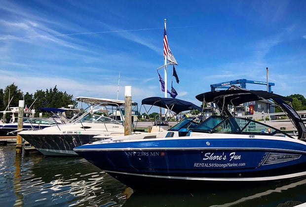 Rent a boat at Strong's Marina. Navigate the waters from the Mattituck Inlet to the Long Island Sound. These 18-5' watercrafts are ideal for family watersports, fishing and cruising.