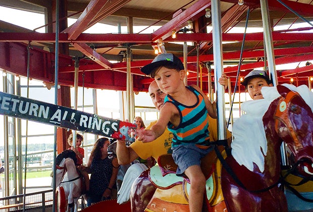 Take a spin on the 100-year-old carousel at Greenport's marina. Photo by Jaime Sumersille