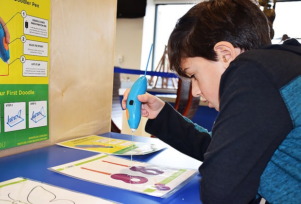 For creative types, there's a handheld 3Doodler pen, where visitors can create and keep their molded plastic creations. Alongside is an augmented-reality coloring station that brings kids' drawings to life. Create a colorful landscape and watch as the "artwork" walks around exploring the world you made.