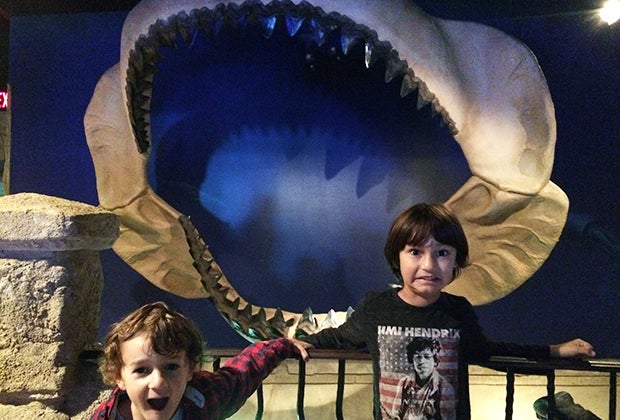 At the Long Island Aquarium size up against the jaw of a great white shark—just don’t get too close to the tank below! Photo by the author.