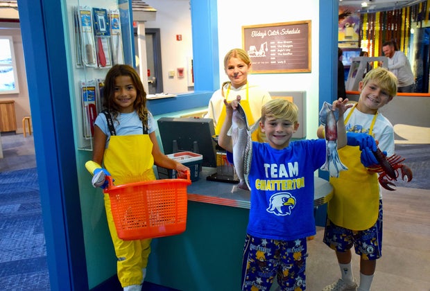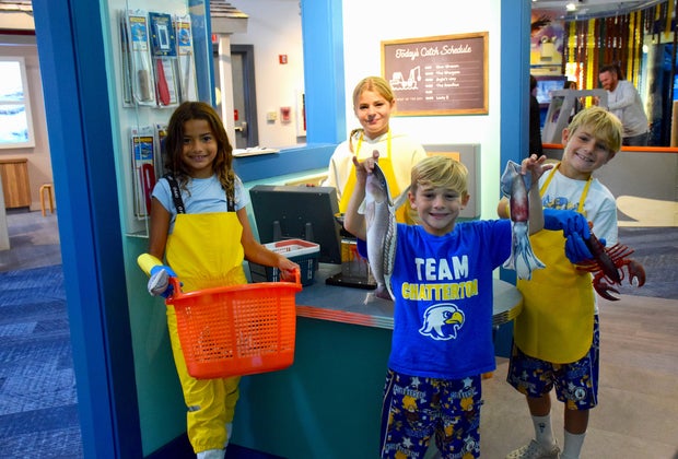• Fish market: Unload the catch of the day, sort the seafood, or sell it at the checkout. This space is perfect for big imaginations. There's a great "catch of the day" photo-op just outside the market.