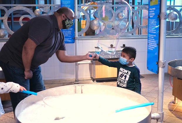 LICM is home to a number of year-round hands-on exhibits that bring visitors back to the Museum again and again. One can't-miss family favorite is Bubbles, where kids have a chance to learn about the interaction of light and molecular structures by using giant wands to fill the room with enormous enchanting bubbles. Award-winning exhibit Broken? Fix It! is another must-see stop, welcoming children and adults to diagnose problems—from thumping cars to broken bicycles—then learn all about the repair process. For crawling and cruising toddlers, TotSpot is the place to be. Imaginative kiddos can explore a sweet little town, featuring a lighthouse, farmer’s market, post office, train station, and more. You can see the complete list of exhibits here. And do note that long-time faves, Sandy Island and Climb-It@LICM, will reopen on June 29!