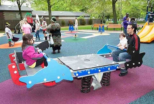 The design of Bethpage State Park's playground takes inspiration from a treehouse. Kids can climb through tunnels and ramps, leading to platforms that resemble a treehouse. Adventurers can tack the lifelike rock wall or climb from leaf to leaf. There are swings and toddler-friendly structures as well. There is plenty of shade for parents to watch from the sidelines, and most structures are covered by trees. Admission to Bethpage State Park is $8 per vehicle, but it's free for Empire Pass holders.