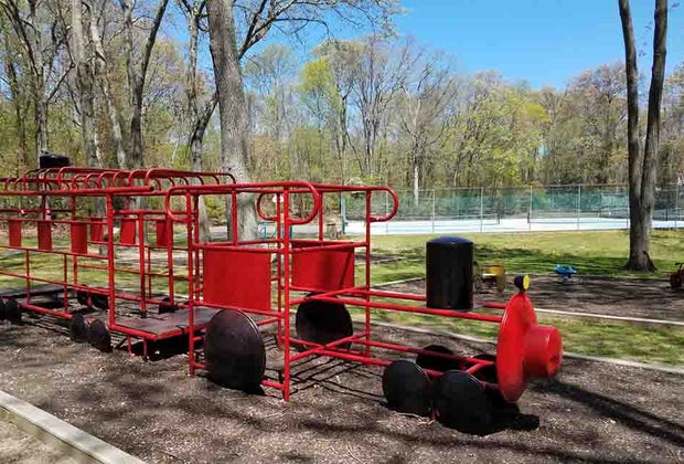 Bayberry Park, or Police Officer's Memorial Park, is completely surrounded by trees. There is small equipment for toddlers to safely climb on, as well as larger structures for older kids. The highlight is a train made of metal bars, perfect for swinging, climbing, and imaginative play. There are also basketball and tennis courts, as well as picnic tables. FREE