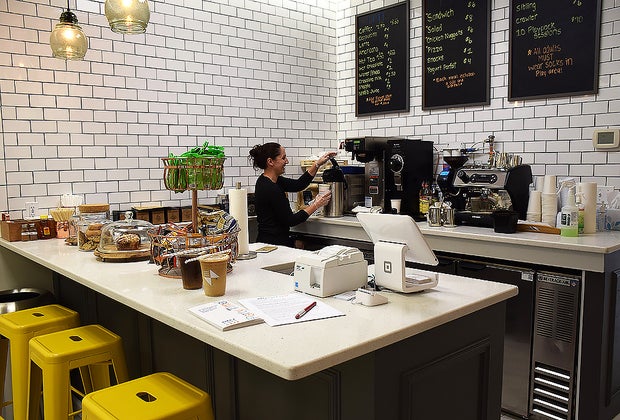 Parents can enjoy a piping hot beverage, including Brooklyn Roasting Company coffees and espressos drinks, plus a selection of SerendipiTea teas. The usual water, juice, and milk are also on hand, as is a variety of breakfast, lunch, and snack offerings. The daily menu consists of sandwiches, salads, pizza, chicken nuggets, yogurt parfaits, and an assortment of yummy baked goods
