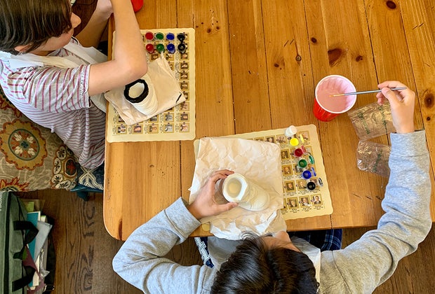 Kids can engage in ceramic painting with a kit from Cook Crafts. Photo by the author