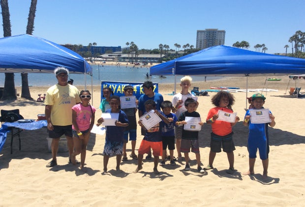 The class is the same every week, culminating in a certificate ceremony, but there is an incentive to return: students who return three times in a season are invited to participate in an end-of-season Advanced Paddle family trip in late September, kayaking seven miles up the coast on the open water to Venice Beach and back.