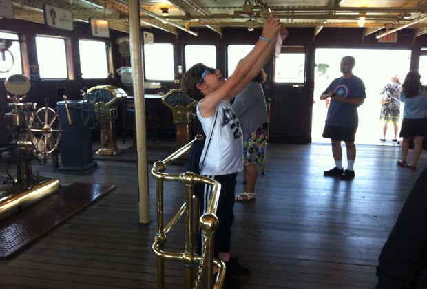 Wandering the decks themselves, peeking into rooms from cabins to ballrooms, and standing at the bridge seeing what the captain saw—all of these are ingredients for some fine imaginative play (and inspired selfies). My crew had a grand time pretending to run the ship, posing like Kate Winslet at the rails, and pretending to be locked up as stowaways.