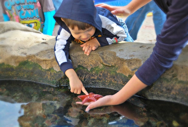 Kids can get up close and personal with marine animals. Photo courtesy of Birch Aquarium