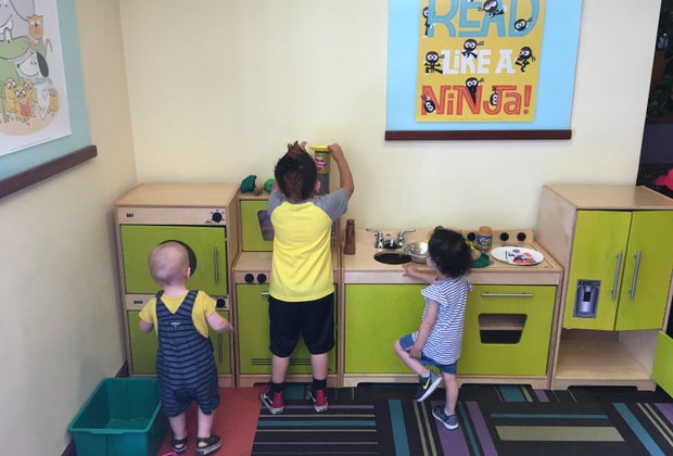 Playtime at Central Library's play kitchen. Photo by Lindsay Halladay