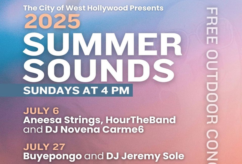 West Hollywood's free summer concert series opens with an early evening featuring Aneesa Strings, HourTheBand, and DJ Novena Carmel