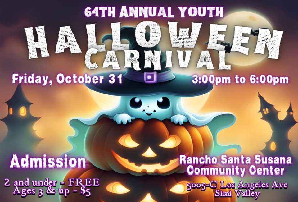 Rancho Santa Susana Community Center hosts Halloween fun, including a hayride, inflatables, crafts, balloons, face painting, carnival games, and photo ops