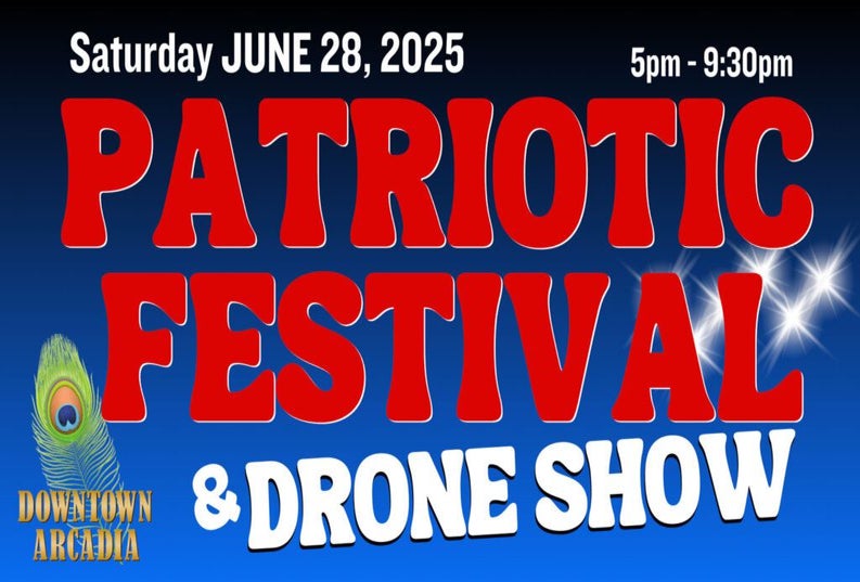 Arcadia is getting into the spirit of patriotism a few days early with a festival in Downtown Arcadia. New for this year: the skies light up with Downtown Arcadia’s inaugural Drone Show!