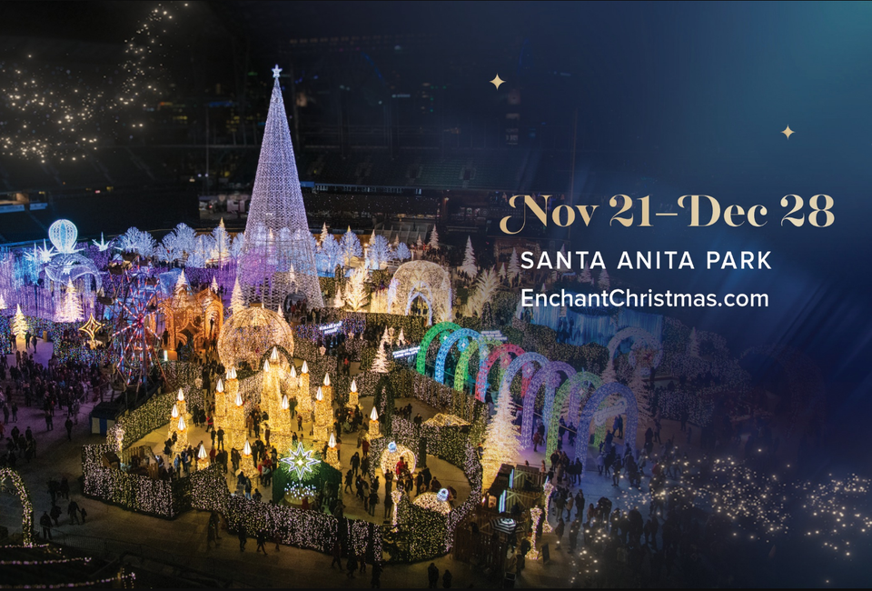 A new immersive experience comes to Los Angeles this holiday season. Enchant Los Angeles transforms Santa Anita Park into a winter wonderland, complete with an ice skating trail, snow slide, larger-than-life sculptures, visits with Santa Claus, and a shopping village. Plus: guests can find holiday cheer in the world’s largest Christmas light maze, as they search for the missing pieces of Santa’s magical timepiece.
