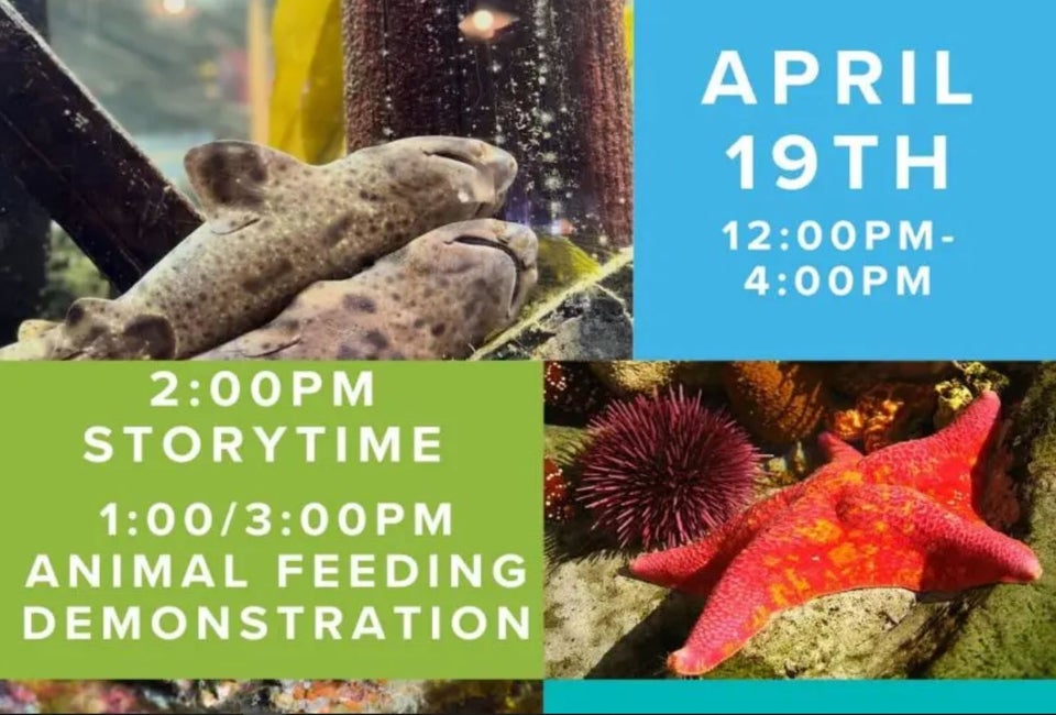 Activities include hands-on crafts, pollution awareness displays, short film screenings, and an Earth Month scavenger hunt. There's a storytime at 2pm, and animal feedings at 1pm and 3pm.