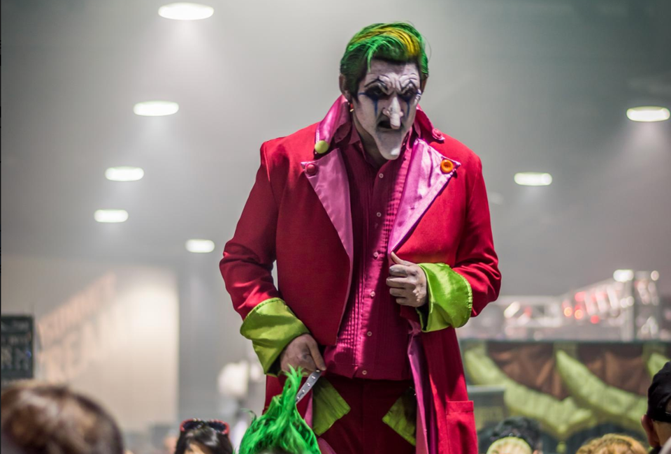 Vendors and exhibitors display haunted attractions and experiences, alongside live entertainment and Halloween-themed panel presentations.