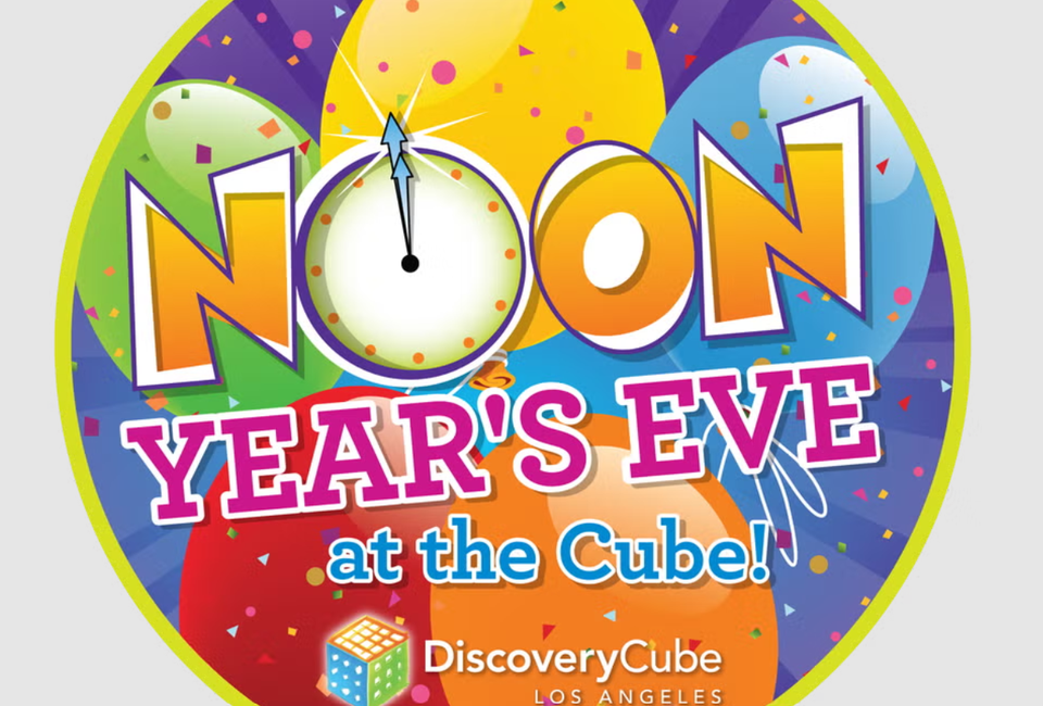 The Discovery Cube Los Angeles celebrates "midnight" at noon and 3pm, with a Noon Year's Eve apple cider/ ginger ale toast and a mega balloon drop.