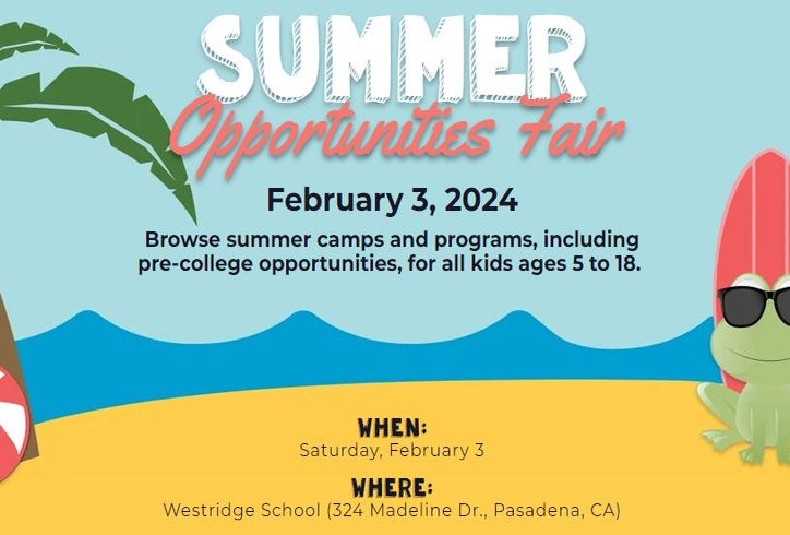 It's never too early to start thinking about summer. Westridge Summer Opportunities Fair is a community event that provides a venue for parents and children to learn about summer programs for boys and girls ages 5-18.
